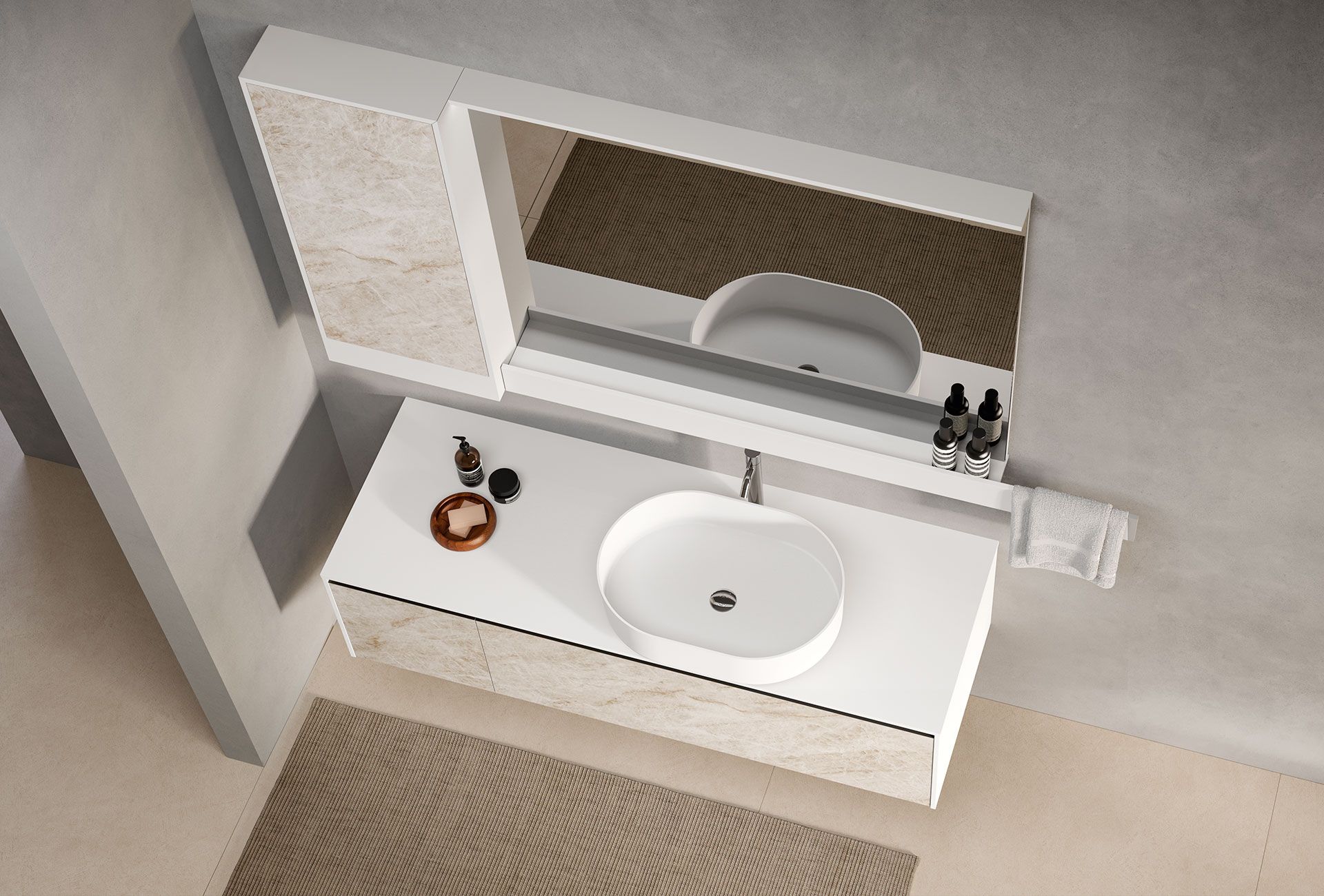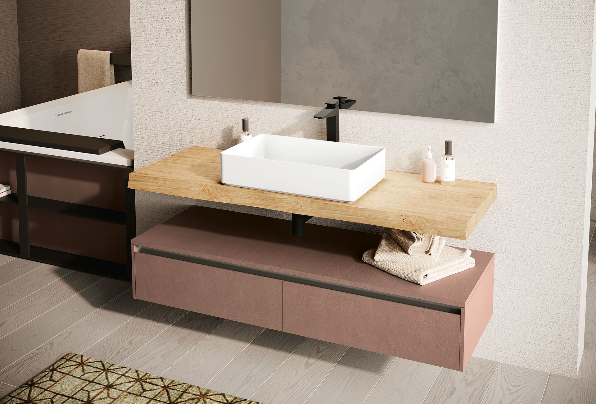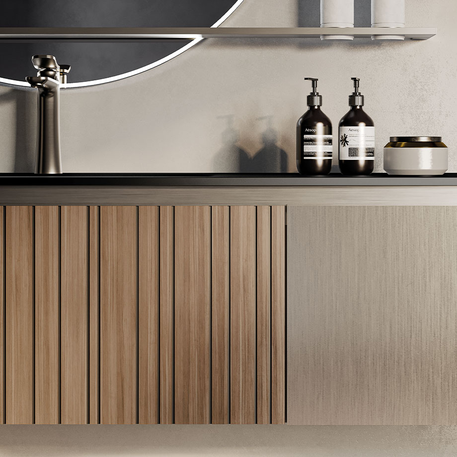 The LAB39 series, designed by Marco Pellici, is the result of contemporary aesthetic research combined with advanced technology. This collection stands out for its dedicated finishes, attention to detail, and a high level of compatibility among the materials used, such as porcelain stoneware, allowing for harmonious combinations and versatile design solutions.